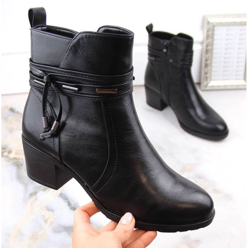 Klassiska, svarta Jeszi -stövlar som kombinerar en feminin look med praktiska lösningar för höstens säsong. Det isolerade fodret ger värme, och en stabil häl med en höjd av 5,5 cm tillför stil och komfort under vardagsbruk. Modellen fäst med en reglage gör det lättare att infoga, och de universella färgerna fungerar i många stilar.