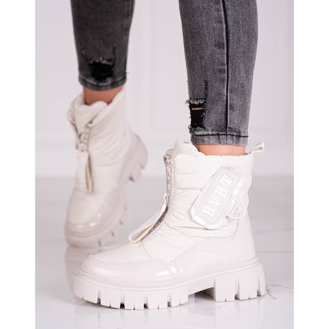 Bredden på ovandelen är 26 cm och dess höjd är 16 cm, vilket gör att arbetarna passar perfekt till fotleden och skyddar den mot kyla. Den beiga färgen gör skorna lätta att kombinera med en mängd olika stilar, från vardagligt till lite mer elegant.