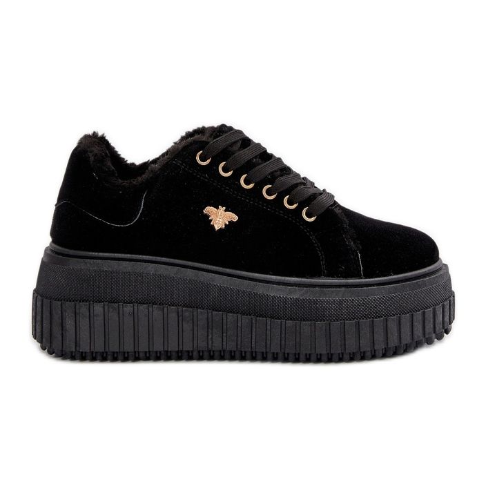 Inna marka Isolerade sneakers för kvinnor på en tjock sula med gulddetalj, svart Lotira