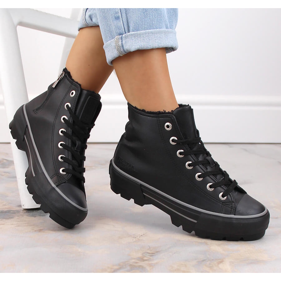 Sneakers isolerade på Big Star MM274039 -plattformen - svart, hög, snygg och praktisk. Perfekt för höst- och vinterperioden kombinerar de en sportig karaktär med stadsstil.