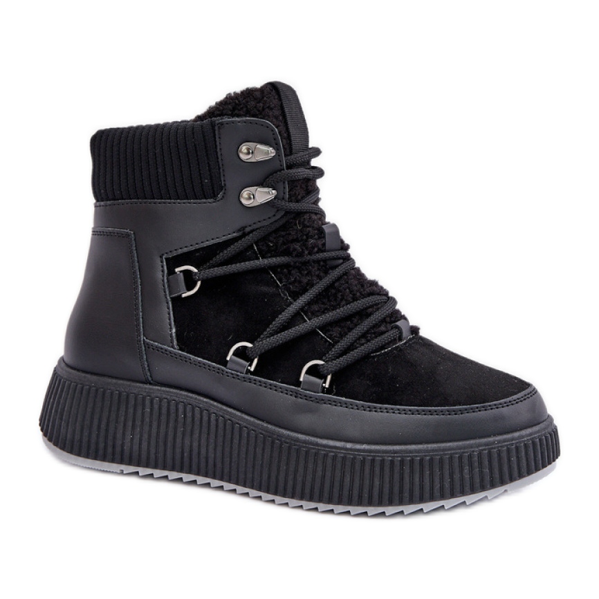 Inuti, isolerade med en skorfilt, ger de värme, vilket gör dem till en idealisk följeslagare med vintervandringar och dagliga stiliseringar. Att låsa med ytterligare krokar gör att du exakt kan matcha skorna till foten, vilket garanterar bekvämlighet med användning under dagen.