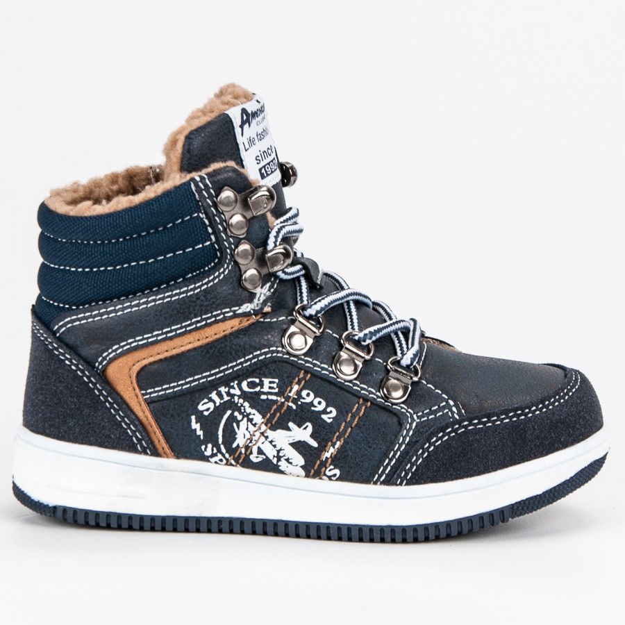 Ta hand om ditt aktiva barns komfort och stil med American Club-isolerade sneakers. Den blå ovandelen med en dekorativ vit flygplansritning ger skorna en barnslig karaktär, och det hållbara utförandet och de praktiska lösningarna är perfekta för vardagsbruk.
