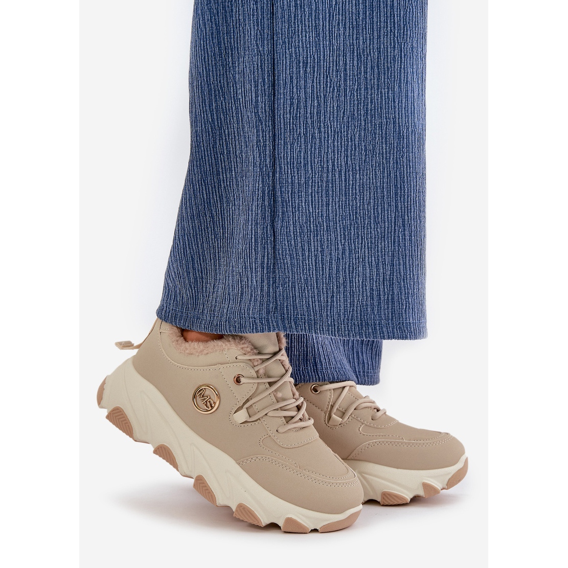 Isolerade kvinnors sportskor snörda på plattformen Beige Bialoa är den perfekta kombinationen av komfort, värme och fashionabla design, som kommer att fungera bra på svalare dagar. Tack vare pälsisolering kommer dessa sneakers att ge utmärkt isolering och skyddar dina fötter från kylan.