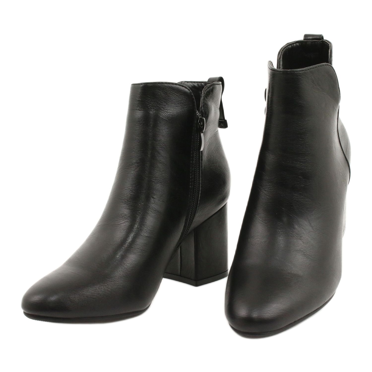 Den klassiska svarta färgen gör att stövlarna lätt passar in i olika stilar, både för vardagsbruk och för speciella tillfällen. En 7 cm hög klack i form av ett block garanterar stabilitet och slimmar figuren, vilket är en viktig aspekt för varje moderiktig kvinna. En delikat dekoration på bältet ger dem en originell karaktär, vilket gör dem till ett unikt inslag i varje garderob.