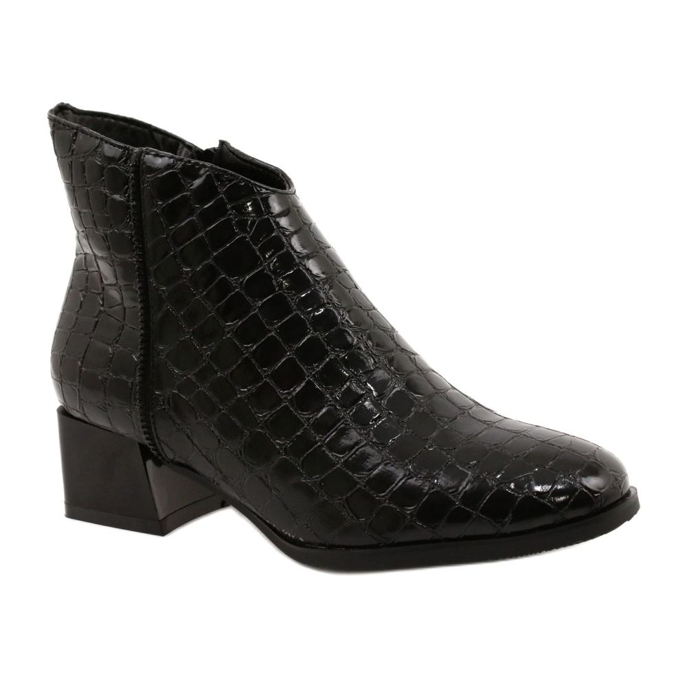 M. Daszyński stövlar för en skjutreglage isolerad MR2130-8-elegant, bekväm och redo för vintern. Det svarta, något lackerade materialet med ett känsligt djurmotiv ger dem en fashionabla, avslappnad karaktär och en tjock, mjuk fleece inuti ger värme även på svalare dagar. Den låga, stabila 4,5 cm hälen och den lätta, icke -brinnande sulan gör att skorna fungerar bra under långa promenader och vardagligt bruk.