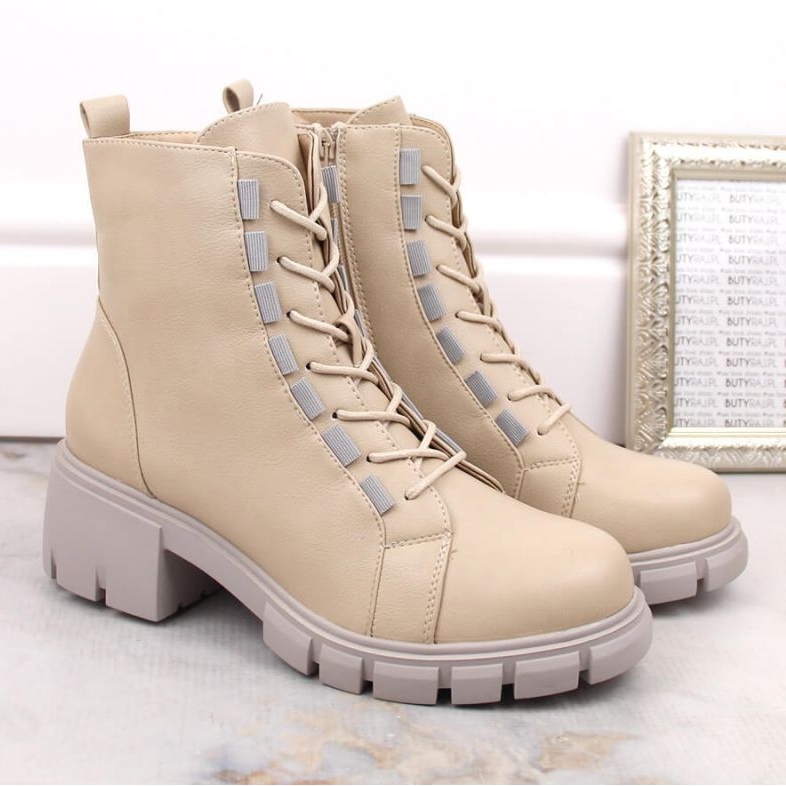 Detaljer: Isolerade stövlar med snörning och dragkedja Jezzi W JEZ422B, beige