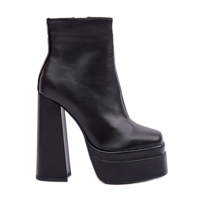 Information: Isolerade svarta ankelboots på en massiv plattform och hög klack