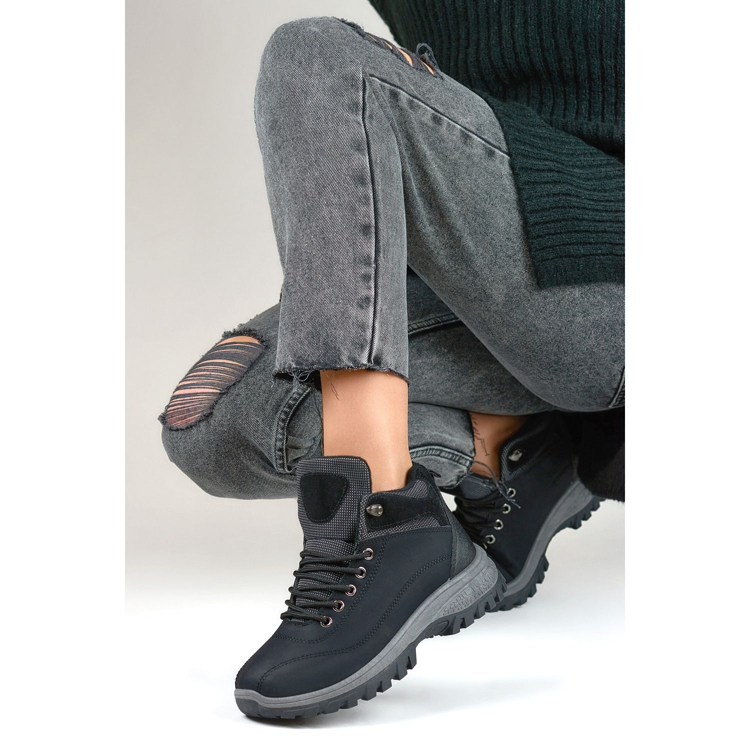 Inna marka Isolerade vinterskor, vandringsskor för ungdomar, snörning svart