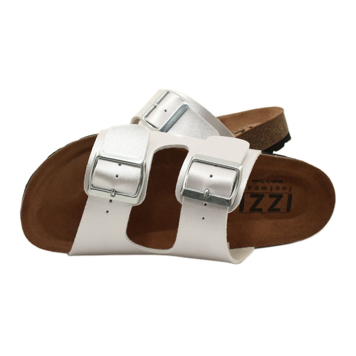 IZZI Alex Silver medicinska flipflops är den perfekta lösningen för kvinnor som letar efter en kombination av komfort och stil. Tillverkade med uppmärksamhet på varje detalj i Spanien, dessa konturformade flipflops garanterar högsta bärkomfort. Deras sula, gjord av högkvalitativ kork och EVA-skum, garanterar flexibilitet och adekvat dämpning, vilket gör att de anpassar sig perfekt till fotens form.