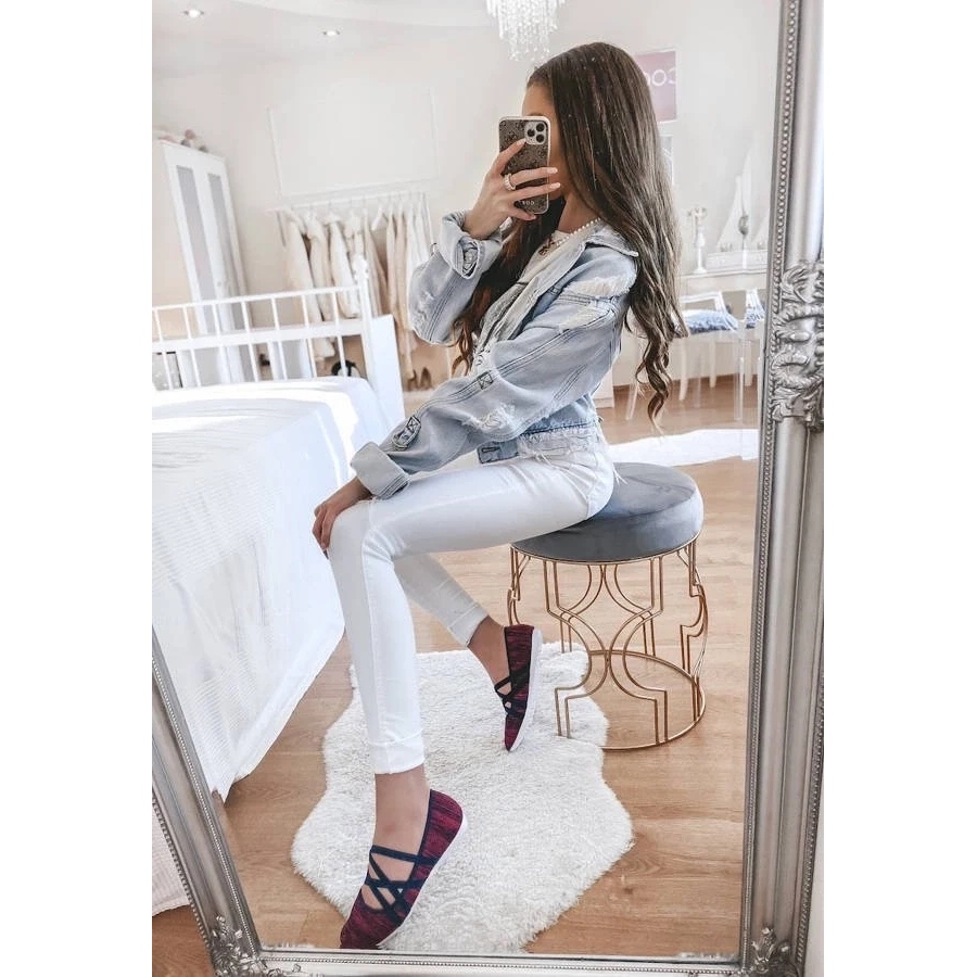 Ballerinas är gjord av högkvalitativt tyg och erbjuder andningsförmåga och komfort att bära även på de varmaste dagarna. Dekorativa gummibandar, fästa vid sulan, stöder effektivt foten och garanterar stabilitet när du går.