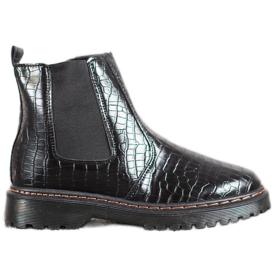 SHELOVET ankelboots är det perfekta valet för kvinnor som letar efter en kombination av avslappnad stil med en rockig karaktär. De kan vara ett perfekt komplement till både vardagliga och mer uttrycksfulla outfits. Utbudet av skor utan mönster, i klassisk svart, gör det enkelt att matcha dem till olika färger och mönster som finns i varje kvinnas garderob.