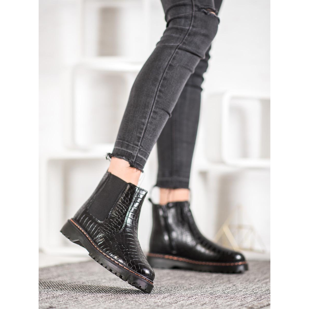 SHELOVET Chelsea-stövlar är gjorda av ekologiskt läder av hög kvalitet och är ett exempel på ansvarsfullt mode som respekterar miljön utan att ge avkall på ett attraktivt utseende. Slip-on ovandelar, som når över ankeln, ger dina fötter inte bara värme, utan också med bra passform och stöd när du går. Dessutom gör närvaron av en dragkedja på insidan det lättare att ta på sig skorna, vilket säkert kommer att uppskattas av varje kvinna som har bråttom.