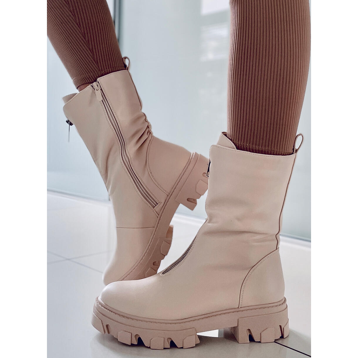 Upptäck den ursprungliga stilen och oöverträffade komforten med Jones militära ankelstövlar i beige från tillverkaren PA1. Dessa kvinnliga arbetare kännetecknas av en hög ovandel och en modern design som fångar ögat. Den tjocka, platta sulan säkerställer stabilitet och komfort, och den snygga silverdragkedjan framtill ger karaktär. En dragkedja på sidan av ovandelen gör dem lätta att ta av och på, vilket gör dem till ett extremt praktiskt val för dagligt bruk.