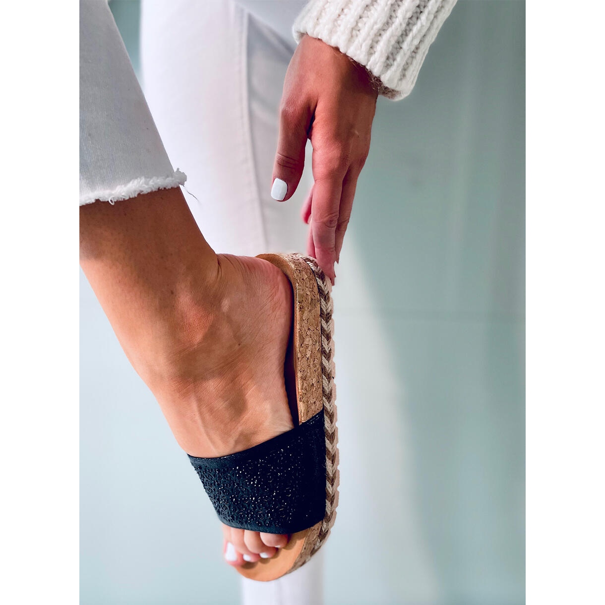 Upptäck sommarstil och extraordinär komfort med Jova Black flip-flops! Dessa eleganta flip-flops för kvinnor har en korksula som ger utmärkt dämpning och är bekväm att bära hela dagen. Deras genombrutna mönster, berikat med subtila stenar, ger en unik karaktär, perfekt för varma dagar.