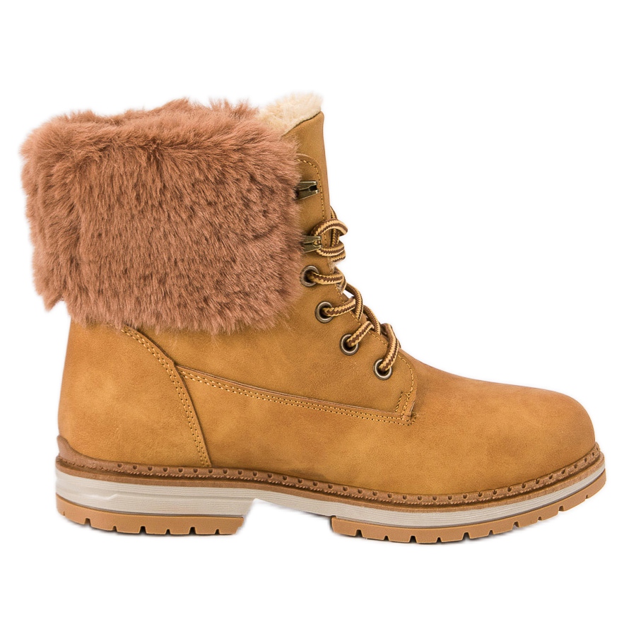 Kamelstövlar med SDS-päls i brunt är den perfekta lösningen för kalla dagar under höst/vintersäsongen. Dessa snygga skor kombinerar komfort och elegans, och deras noggranna utförande av högkvalitativa material säkerställer hållbarhet och ett snyggt utseende under lång tid.