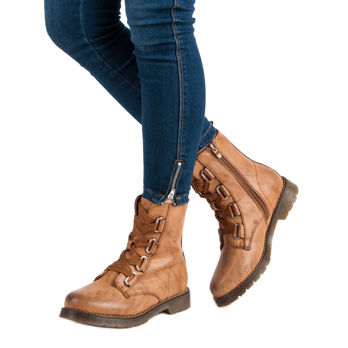 SDS Camel brown spetsarbetare är ett idealiskt val för kvinnor som värdesätter komfort och stil under kallare dagar. Dessa fashionabla bruna arbetare är ett perfekt val för höst och vinter, tack vare deras smala övre räckvidd över ankeln och en bekväm 3,0 cm platt klack.