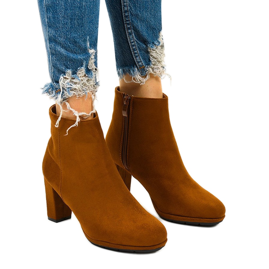 Xentora camel högklackade ankelstövlar är ett perfekt förslag för hösten, som kombinerar elegans med komfort. Tillverkade av högkvalitativt mockaliknande material, utmärker sig dessa bruna skor inte bara av sin fashionabla färg, utan också av sin noggranna finish. En 7,5 cm hög stolpe garanterar stabilitet, vilket gör att varje kvinna känner sig självsäker samtidigt som den bantar figuren.