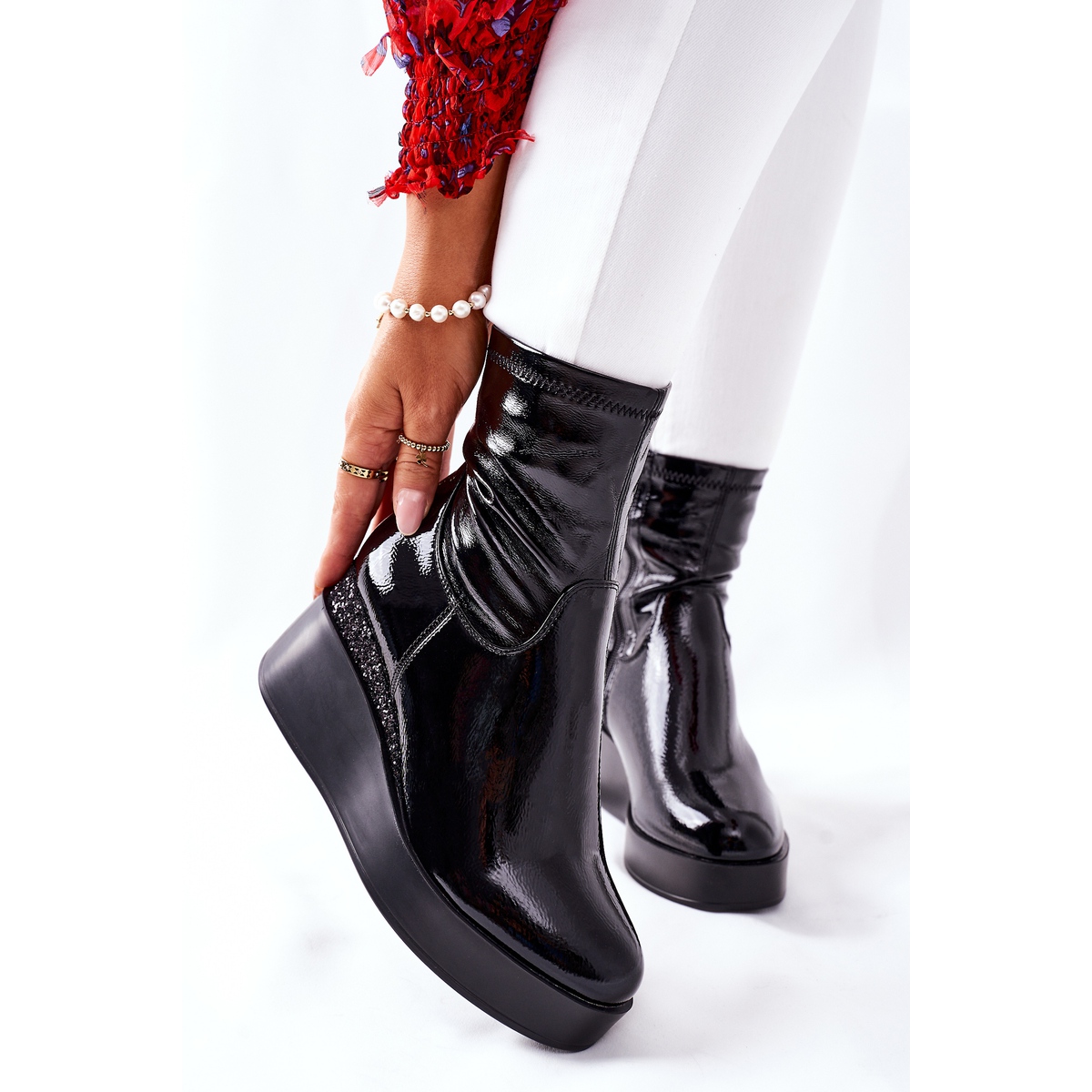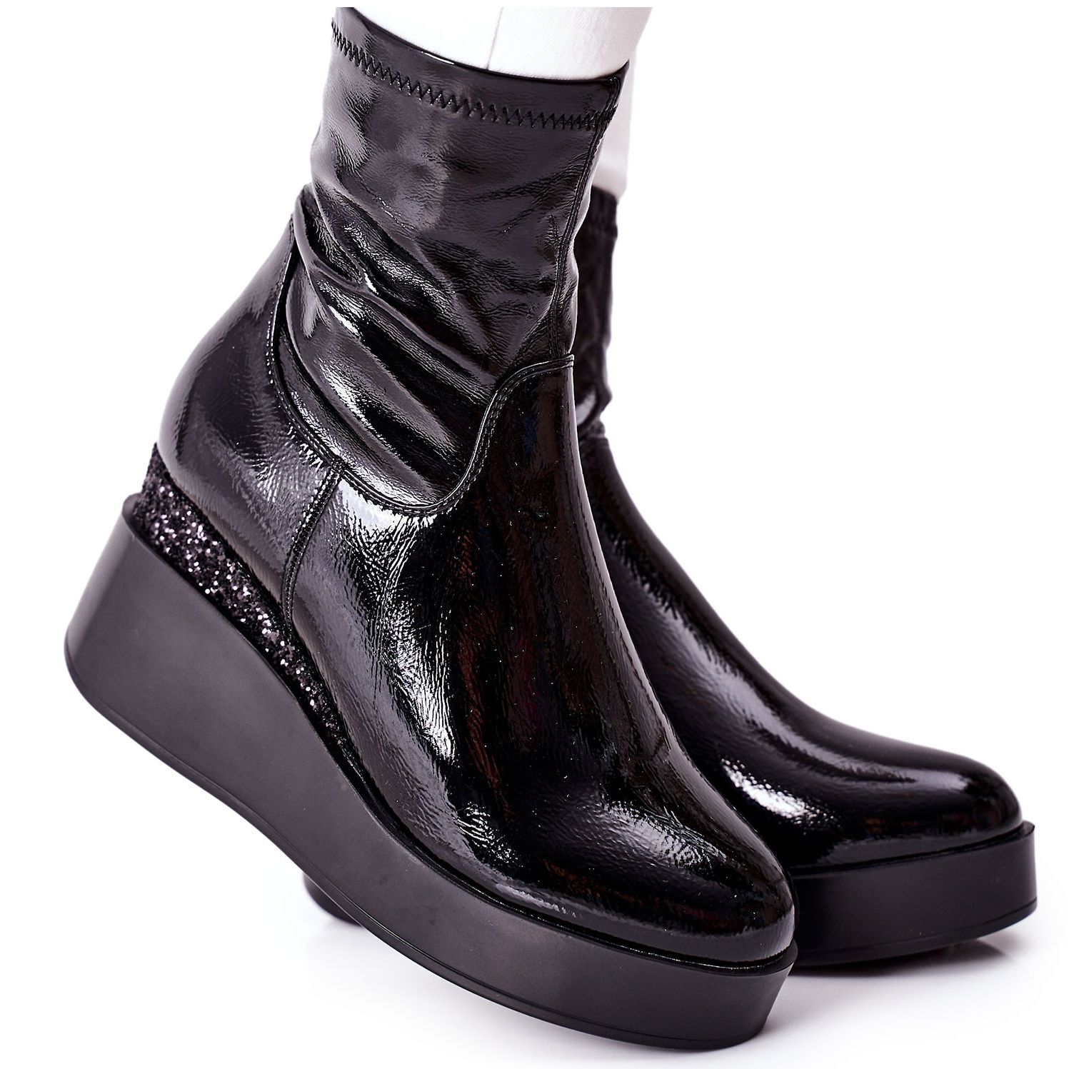 Detaljer: S.Barski Kängor för kvinnor på kilen lackerad svart terapi