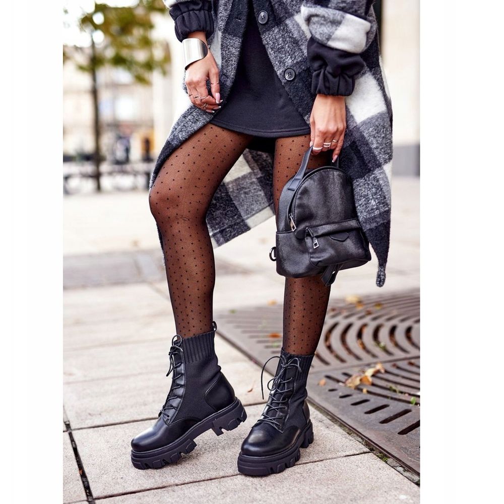 Information: S.Barski Kängor för kvinnor Snörning med en strumpa svart My Need