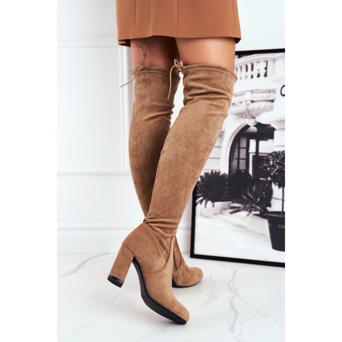 Vi presenterar beige Mulanka-stövlar för kvinnor, som perfekt matchar alla stylingar. Tillverkade av högkvalitativ eko-mocka, dessa extremt eleganta stövlar når över knäet, vilket kommer att ge en unik karaktär till dina outfits.