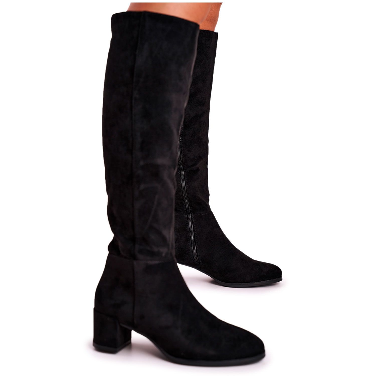Upptäck elegans och komfort med Sergio Leone damstövlar i svart mocka (KZ273). Dessa tidlösa stövlar med tjock klack är ett perfekt komplement till din höst-vintergarderob, och kombinerar moderiktig design med praktiska lösningar. Tillverkade av ekologisk mocka, ger de inte bara ett attraktivt utseende, utan också komfort att bära, tack vare delikat pälsisolering.