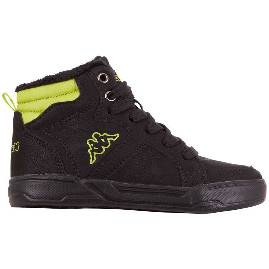 Barnskor Kappa Grafton 260826T 1133 - Svart, isolerat, högt - perfekt för svalare dagar. Tillverkade av hållbara syntetiska material, de kombinerar en klassisk look med sportkomfort. Tack vare den höga övre och ett mjukt, syntetiskt pälsfoder ger de värme och komfort, och ett praktiskt sidolås gör det lättare att klä sig snabbt. Skuminsatsen och en gummisula med EVA -insatsdynan stegen och förbättrar komforten under vardagliga spel och stadsvandring.
