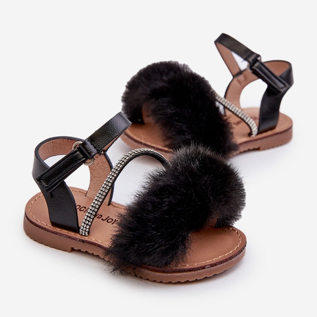 Detaljer: Kardborresandaler för barn med päls, svart rosavere