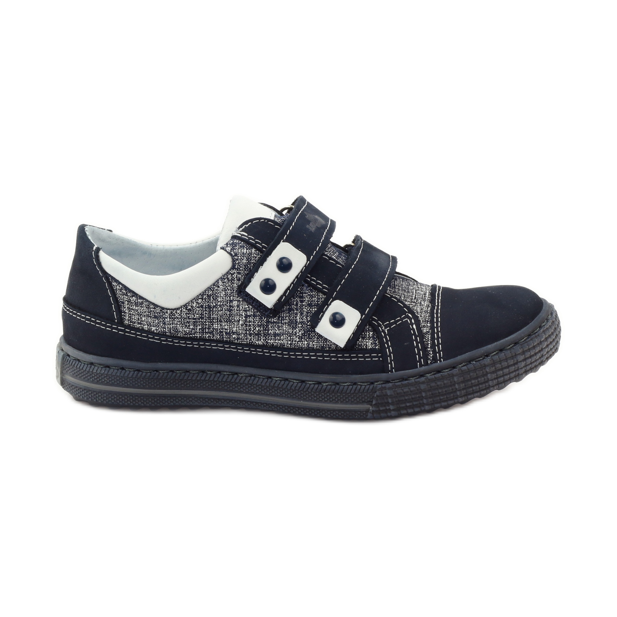 Insidan av skorna är fodrad med naturligt läder, vilket garanterar andningsförmåga och komfort. Den antibakteriella profilerade innersulan anpassar sig anatomiskt till formen på barnets fot, och den extra användningen av silverjoner eliminerar effektivt obehagliga lukter samtidigt som bakterietillväxten minimeras. Allt detta gör skorna antiallergiska och hälsosamma för foten.