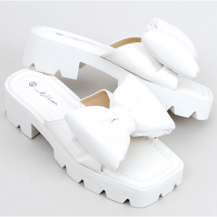 Vi presenterar Keesha White flip-flops med hög sula - den perfekta kombinationen av komfort och elegans för kvinnor som värdesätter unik stil! Dessa fullnarvade damtofflor kännetecknas av sin designersula, vilket ger dem en unik karaktär. En spektakulär rosett placerad på ovandelen ger det hela en feminin touch och gör dem till ett idealiskt val för sommardagar.