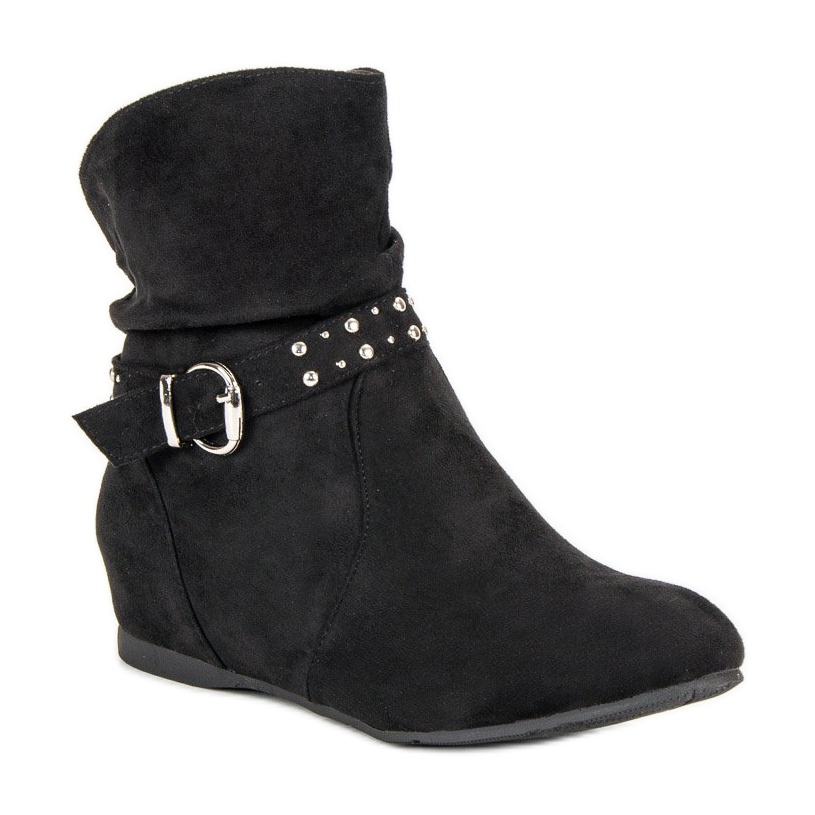 Black Seastar wedge boots är en modell som kombinerar elegans, komfort och moderiktig design. De är gjorda av ekologisk mocka av hög kvalitet och passar perfekt in i aktuella skotrender. Det dekorativa spännet ger dem karaktär, vilket gör dem till ett perfekt val för olika tillfällen.