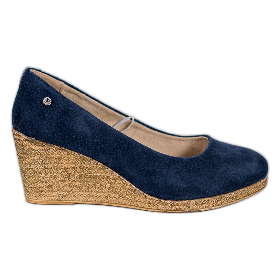 Upptäck elegans och komfort med wedge pumps från Filippo. Dessa fantastiska blå damskor är gjorda av högkvalitativt naturligt läder, vilket gör dem inte bara hållbara utan också mycket bekväma att bära. Deras släta yta ser snygg ut, och den subtila accenten i form av en metall, rund klämma på sidan ger originalitet.