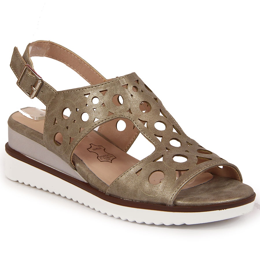 Skodonet kännetecknas av en 5 cm hög kil, vilket säkerställer ett attraktivt utseende och komfort under gång. Dessutom hjälper den 2 cm tjocka sulan att absorbera steg, vilket ger dig en känsla av lätthet. Sandalerna är gjorda av högkvalitativa material och är inte bara estetiska utan också funktionella. Insidan av skorna är avslutad med naturligt läder på innersulan och ekologiskt läder på fodret, vilket påverkar användarkomforten även vid långvarig användning.