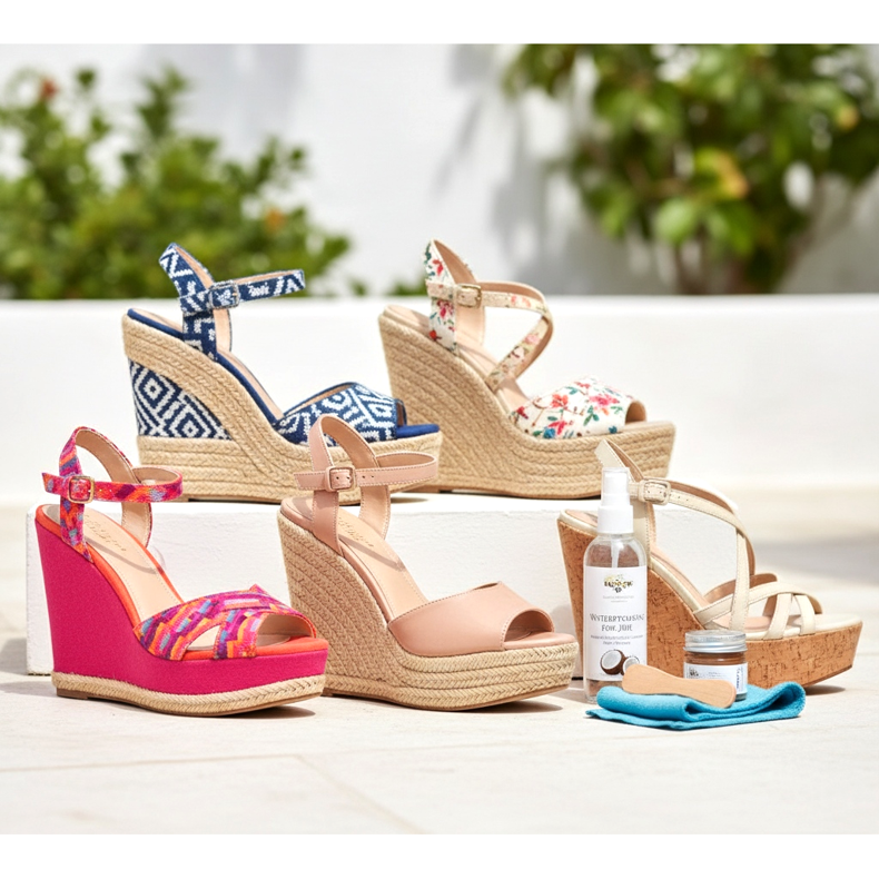 Att ta hand om kilskor är enkelt: skydda juteplattformen mot fukt med ett impregneringspreparat, rengör korksulan regelbundet med en fuktig trasa och applicera då och då skonsam kokosolja på den, vilket förhindrar att den torkar ut och spricker. Sådana välskötta skor kommer att tjäna dig under många säsonger.