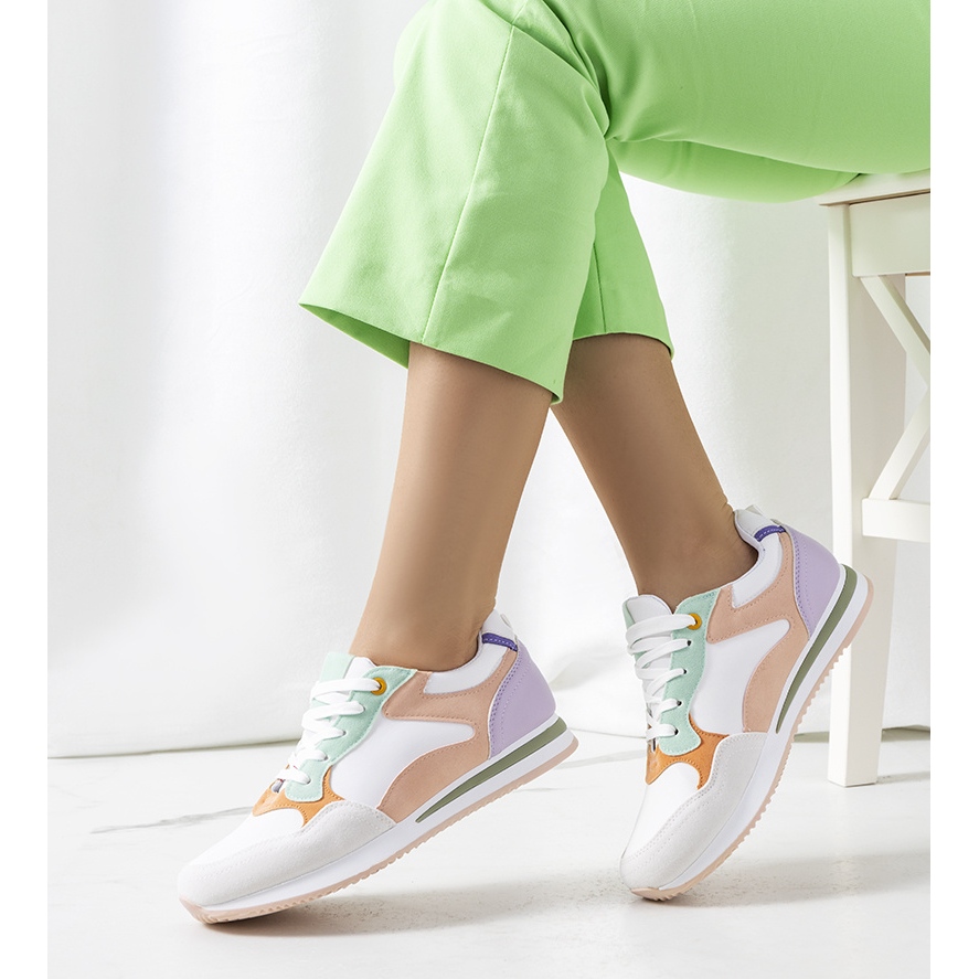 Upptäck extraordinär stil och komfort med vita och lila Kindler-sneakers för kvinnor! Dessa unika skor kombinerar ett klassiskt snitt med en moderiktig färgkombination i nyanser av vitt, lila och rosa, vilket ger din styling ett nytt uttryck. Kindler sneakers inte bara njuter av sitt utseende, utan erbjuder också högsta kvalitet tillverkade av ekologiskt mockaläder, vilket säkerställer hållbarhet och komfort att bära.