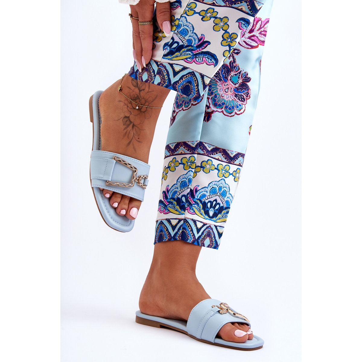 Vi presenterar klassiska flip-flops för kvinnor med dekoration i en vacker blå Imponerande färg, som är det perfekta valet för våren och sommaren. Dessa eleganta flip-flops tillverkade av högkvalitativt ekologiskt läder kombinerar komfort med moderiktig design.