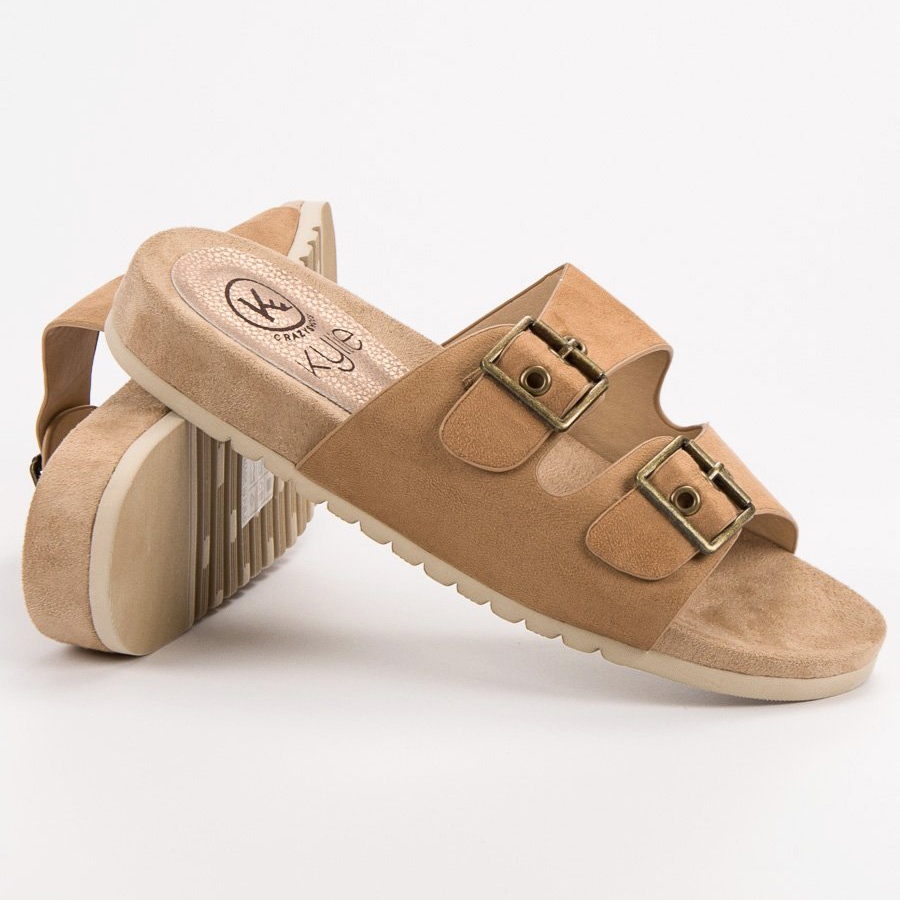 Den snygga finishen med två stora spännen ger dem karaktär och den bruna färgen gör dem lätta att matcha till olika outfits. Kylie flipflops är ett perfekt val för kvinnor som letar efter mångsidiga vardagsskor, perfekta att kombinera med sommarklänningar, shorts eller jeans.