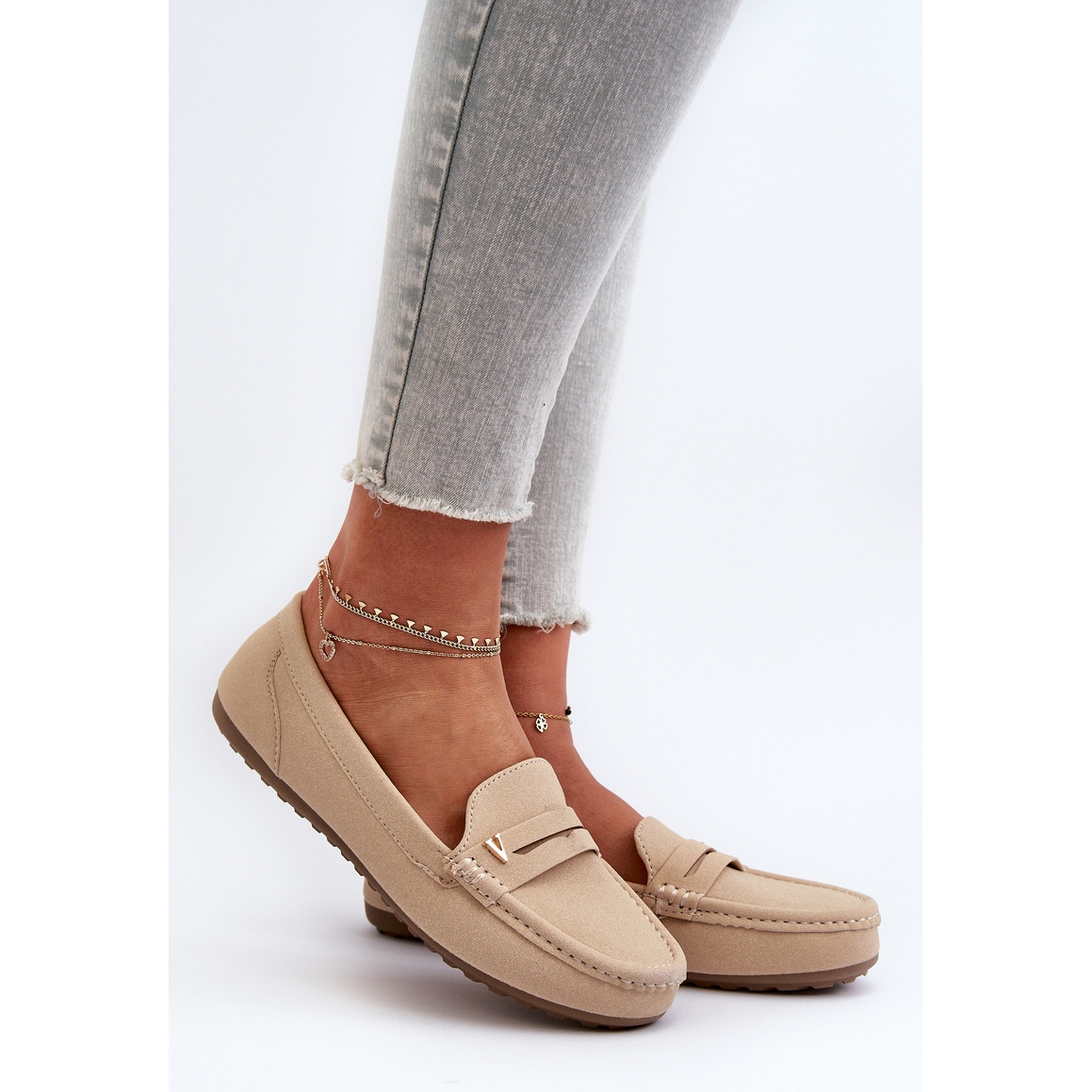 Classic Moccasins of Light Beige Irapear är ett idealiskt förslag för kvinnor som värderar komfort och elegans i vardagliga stiliseringar. Tillverkade av ekologiskt mocka läder av hög kvalitet ger de inte bara estetiskt utseende, utan också komforten att bära tack vare en mjuk, profilerad tyginsats.