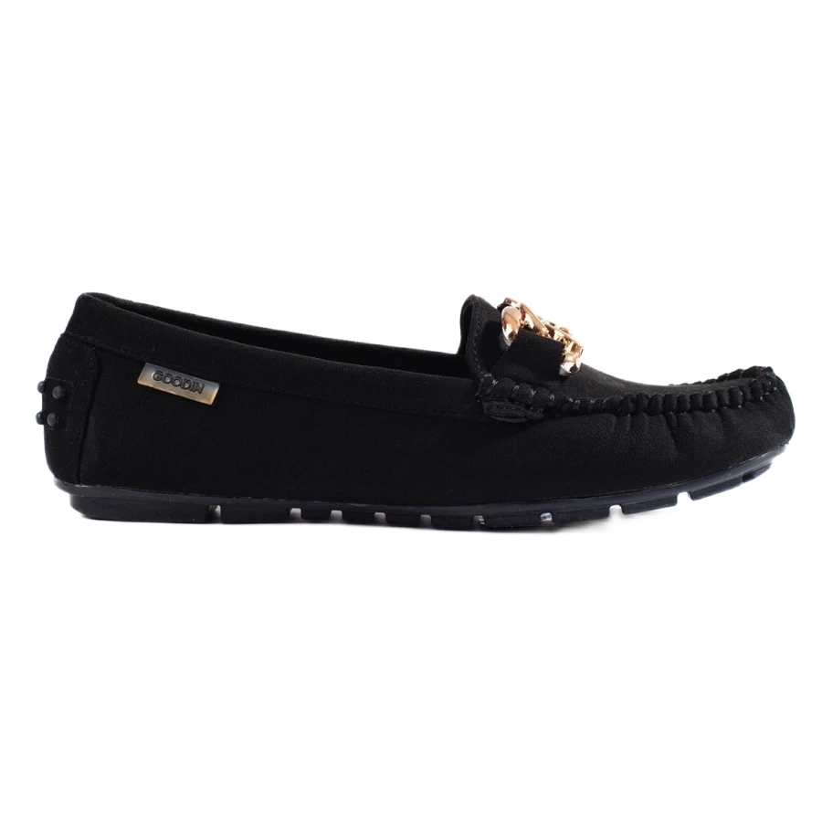 Klassiska Shelovet Women's Loafers - Svart, elegant och bekväm. Den universella formen i den klassiska utgåvan innebär att modellen från Keeshoes -samlingen är bra för både dagligen och vid mer högtidliga tillfällen. En diskret metallkedja lägger till karaktär och betonar den eleganta, avslappnade stilen.