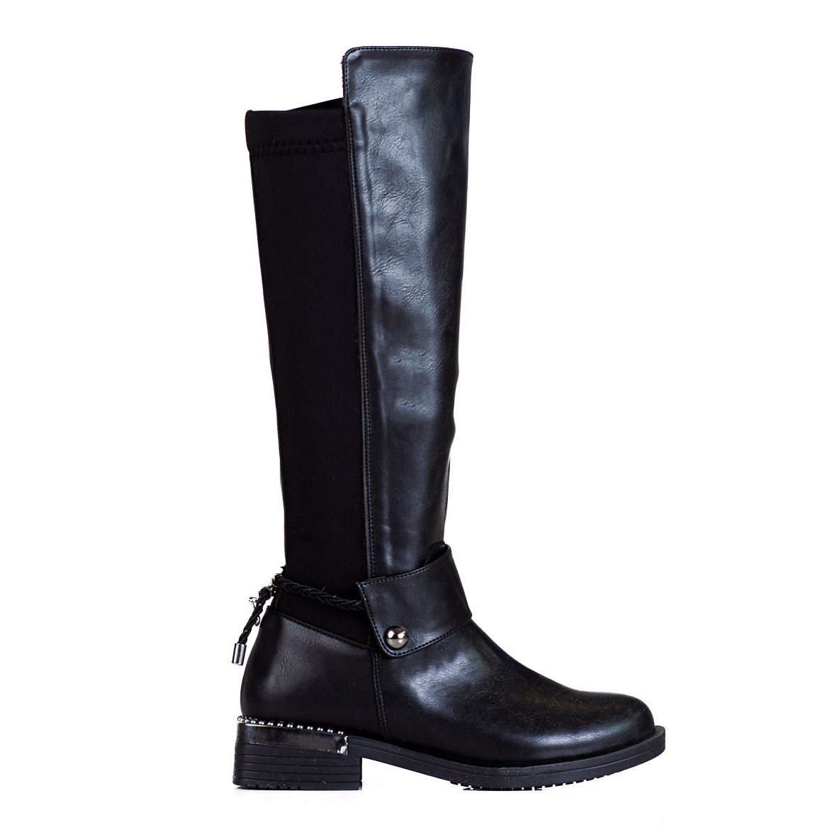Detaljer: Klassiska damstövlar på en snygg platt Shelovet-klack svart