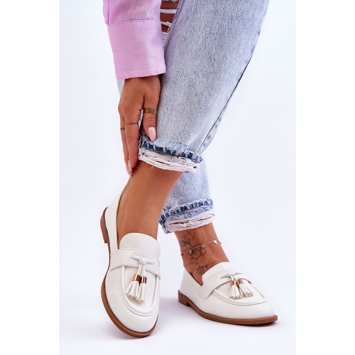 Inna marka Klassiska fransade läder Loafers Vita Camis