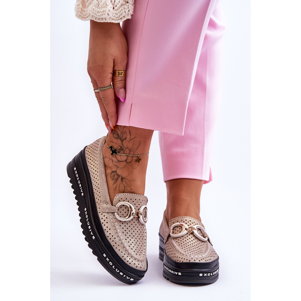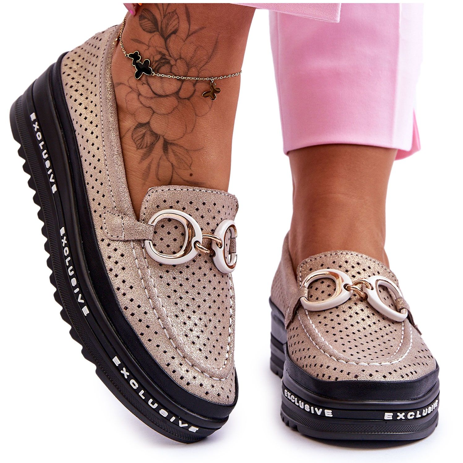 Upptäck elegansen och komforten som erbjuds av klassiska S.Barski genombrutna lädermockasiner i en moderiktig guldfärg. Dessa extremt snygga damskor är omsorgsfullt gjorda av högkvalitativt naturligt läder, vilket garanterar inte bara hållbarhet utan också komfort att bära. Det genombrutna mönstret på ovandelen ger dem en modern karaktär, vilket gör dem till ett idealiskt val för olika tillfällen.