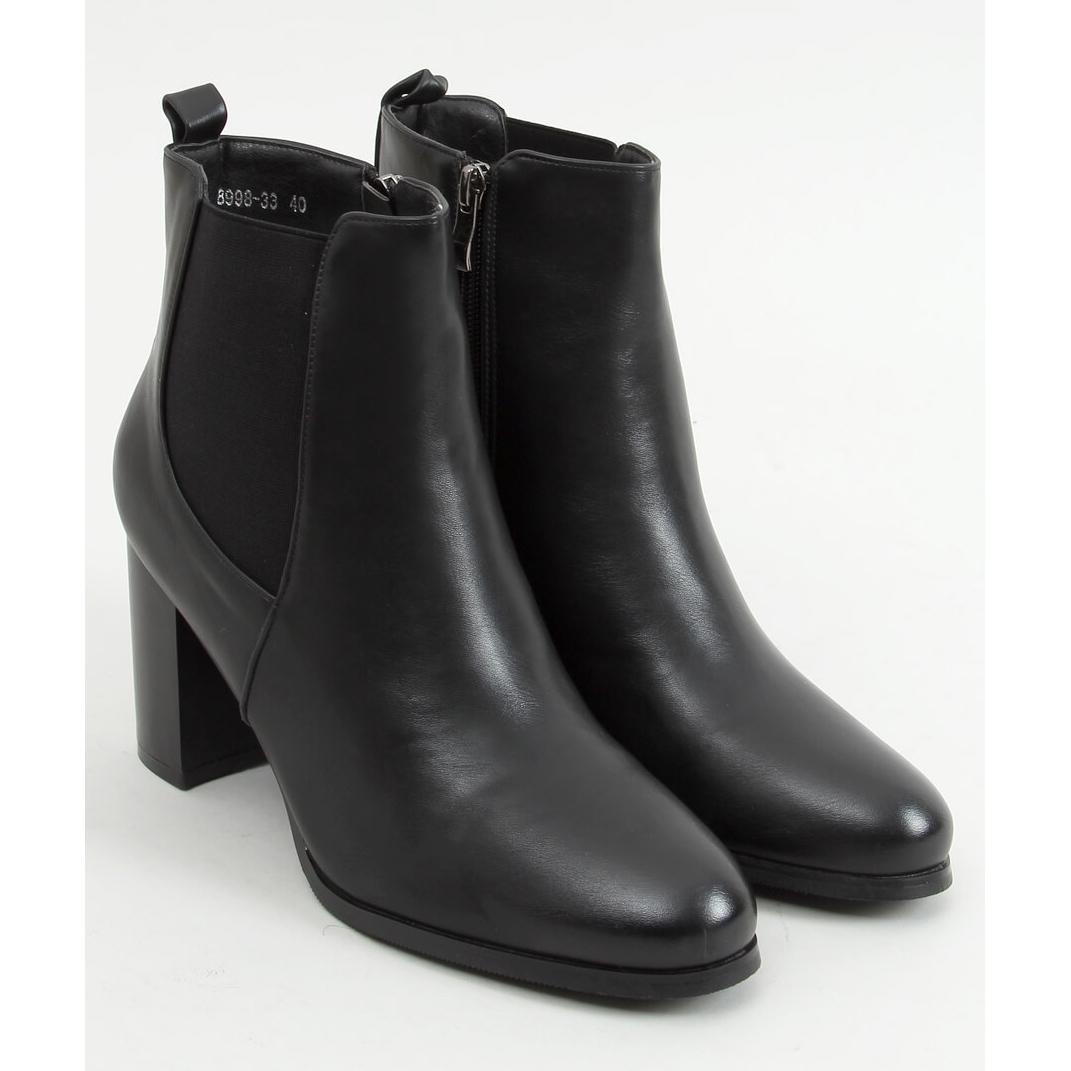 En intressant accent av Elvira Black-modellen är en elastisk insats på sidan av ovandelen, som liknar stilen med Chelsea-stövlar. Tack vare detta får du inte bara stil, utan också i bekvämligheten med att ta på den - fäst den bara med en dragkedja för att snabbt och enkelt göra dig redo att gå ut. En stabil 8 cm hög stolpe gör benen perfekt smalare och ger dem lätthet och elegans.