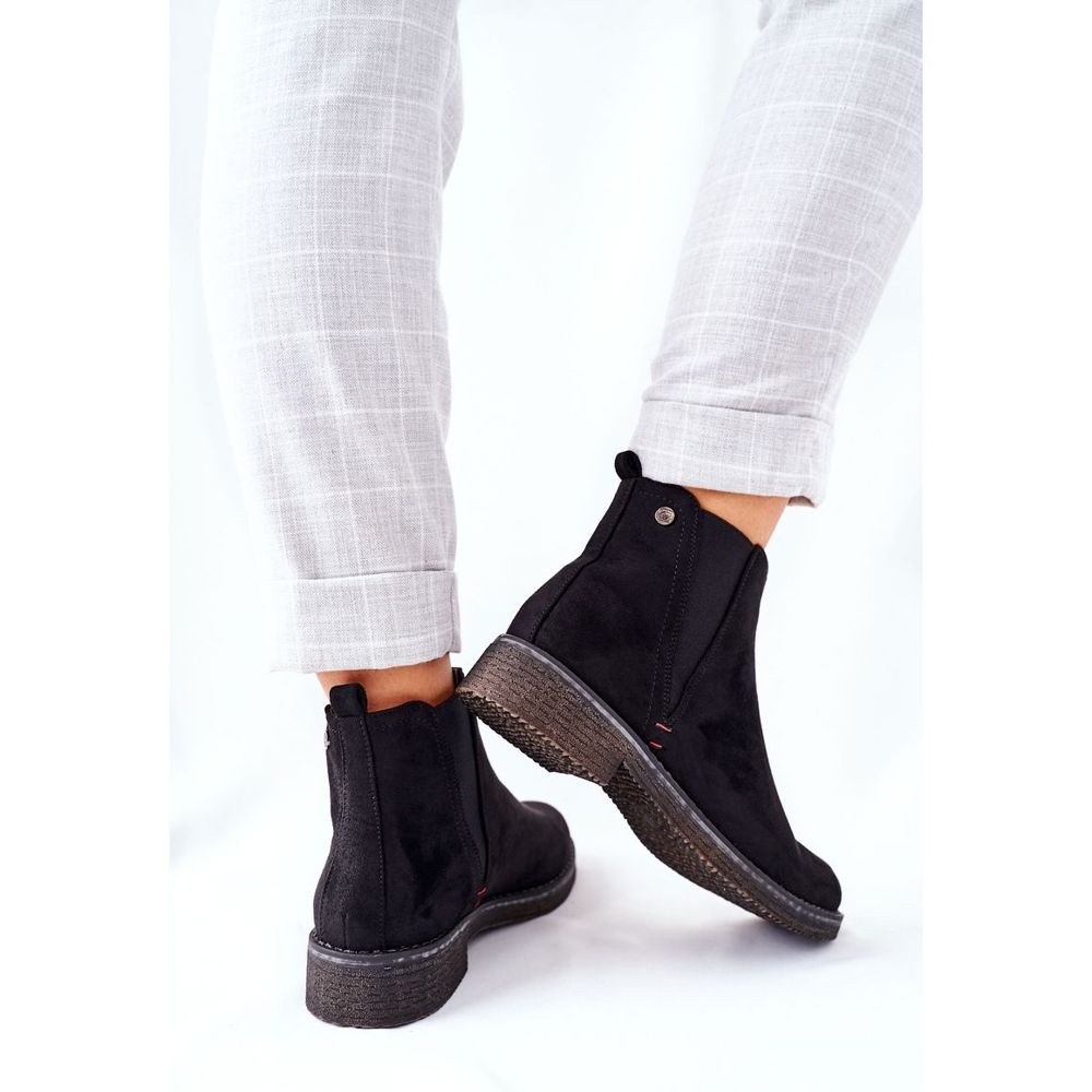 Stövlarnas insida är täckt med en varm, behaglig fotfilt, vilket gör dem perfekta för kallare dagar. Deras 11 cm höga fotled och runda tå ger komfort och tillräckligt stöd för foten. Denna modell är utan tvekan universell - den kommer att fungera perfekt i både avslappnade och mer eleganta kombinationer.