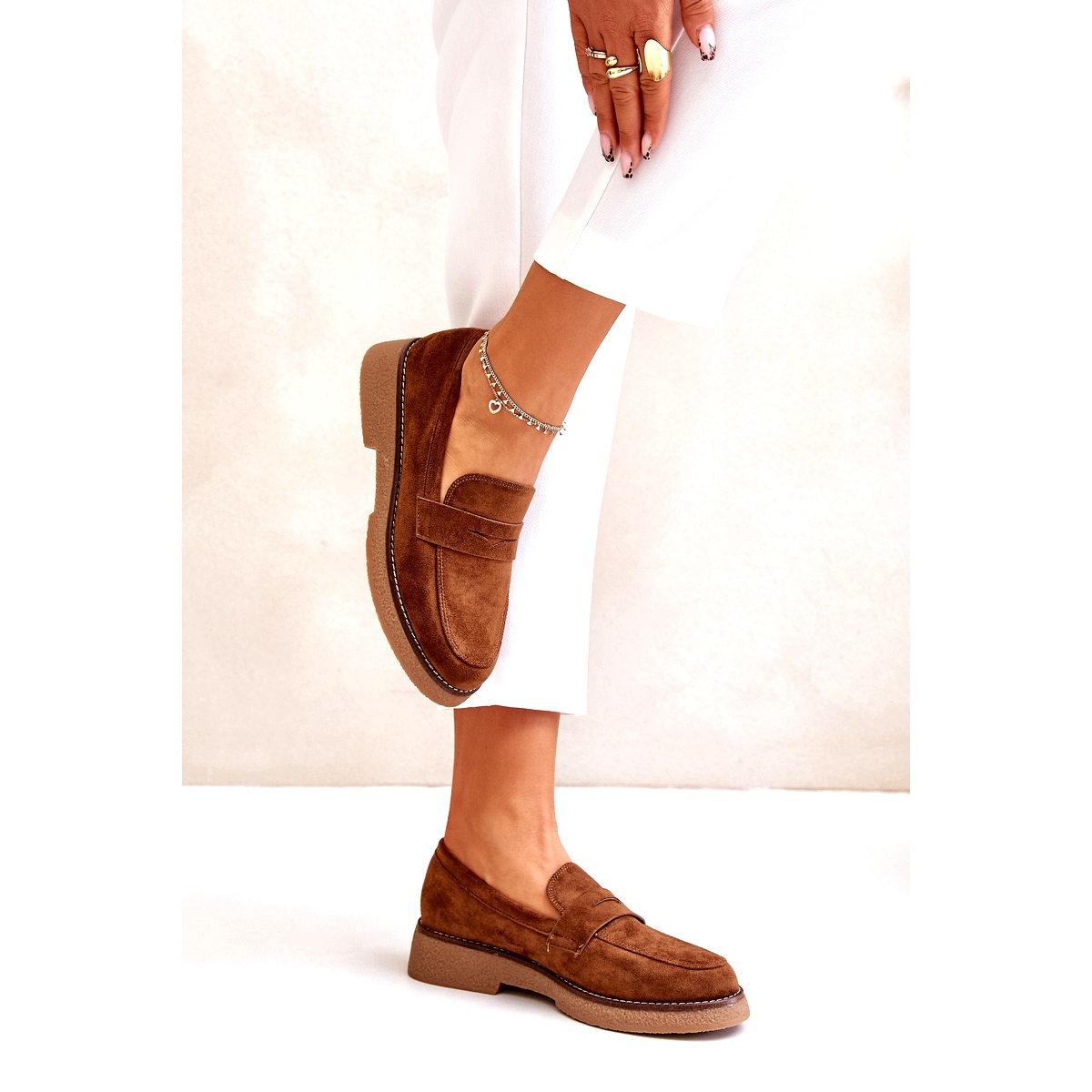 Upptäck klassikern i en modern upplaga tack vare Bellucci Women's Moccasins som glädjer sig vid första anblicken! Tillverkade av högkvalitativ eko -mocka, dessa bruna loafers kombinerar stil med komfort, vilket ger komfort vid varje steg. Deras platta häl med en höjd av 4 cm gör dem perfekta både dagligen och för mer formella tillfällen.