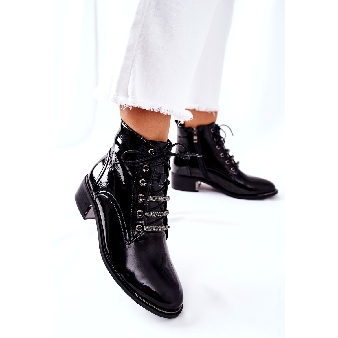 Denna modell kännetecknas av en rund tå och en platt 3,5 cm hög klack, vilket gör dem inte bara snygga, utan också bekväma att använda. En ytterligare fördel är isoleringen som håller dina fötter varma och skyddade mot kyla. Stövlarna är ankelhöga vilket ger extra stöd och stabilitet under gång.