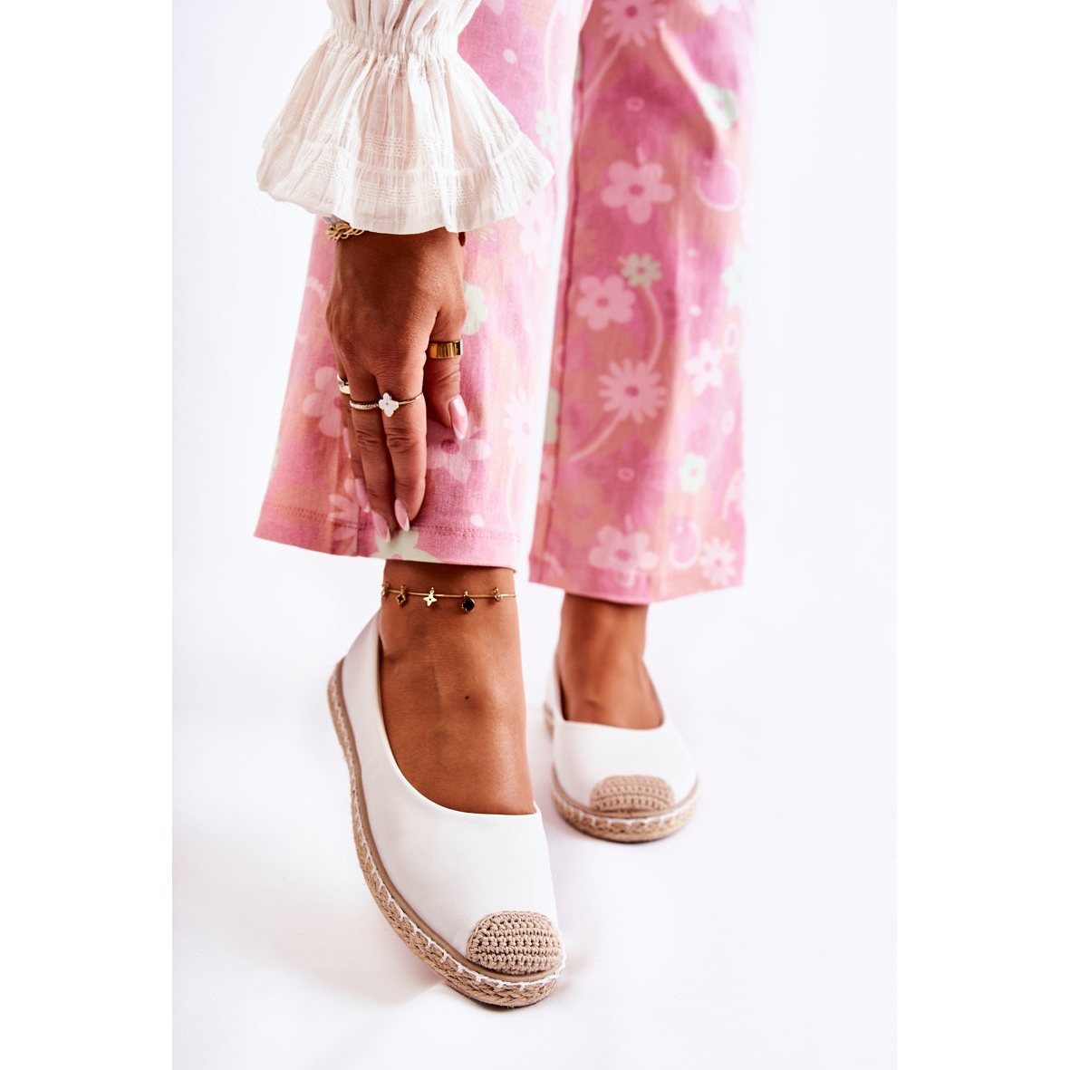 Vi presenterar klassiska espadrillor i läder för kvinnor i en elegant nyans av vitt med beige accenter - Calabria-modellen. Dessa snygga skor gjorda av ekologiskt läder kombinerar komfort och moderiktig design, perfekt matchar olika sommarstilar.