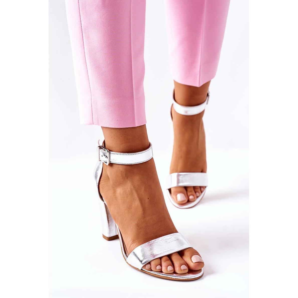 Upptäck elegans och komfort i klassiska Laura Messi 1760 högklackade lädersandaler i en vacker silvernyans. Dessa snygga sandaler, helt gjorda av naturligt läder, kombinerar utmärkt kvalitet med uppmärksamhet på varje detalj. Tack vare den bekväma, 9 cm höga blockhälen kommer din figur att se smal ut och samtidigt kommer du att känna dig extremt bekväm i varje ögonblick.