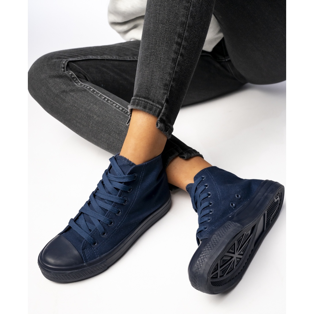 Upptäck klassiska kvinnors sneakers i en elegant marinblå färg, som utgör ett perfekt komplement till alla stilisering. Karaktäriseras av en hög övre och minimalistisk design är dessa sneakers en del av de senaste trenderna, både avslappnade och streetwear.
