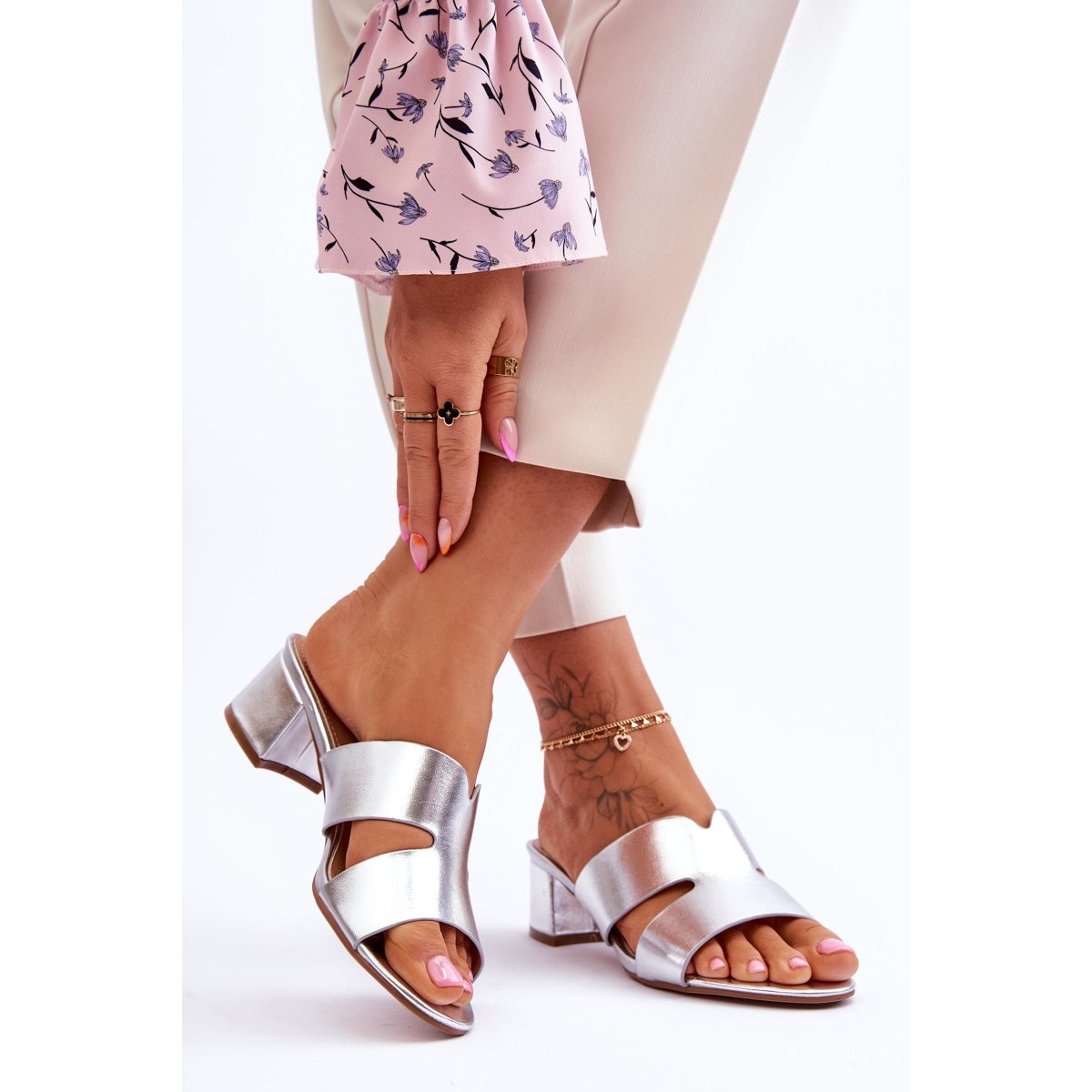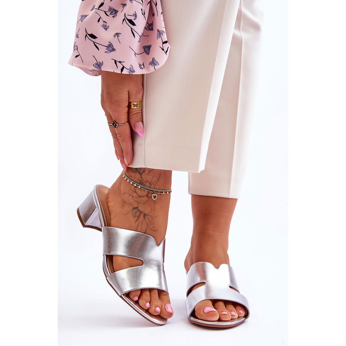 Detaljer: Klassiska Miley-lädertofflor med låg klack i silver