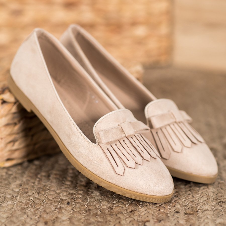 Vi presenterar klassisk brun mocka Lords av Coura, som kommer att lägga till elegans till varje styling. Dessa balettlägenheter för kvinnor, gjorda av ljusbrunt, ekologiskt mockaläder, kombinerar stil och komfort. Uppbyggda, rundade tår med en dekorativ rosett och en fransinsats gör dem perfekta för olika tillfällen.